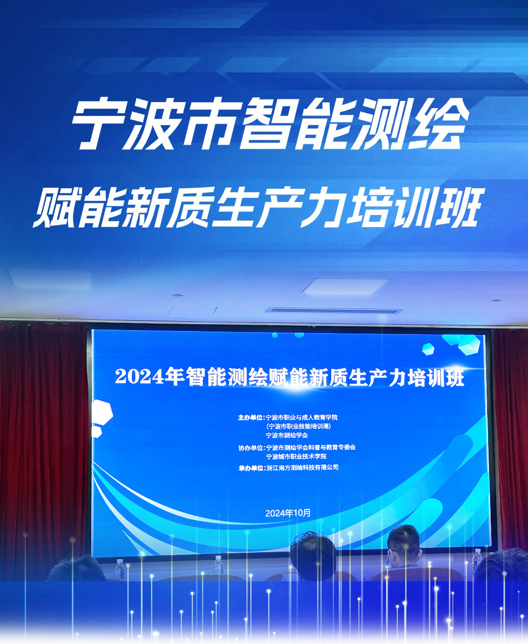 發(fā)布日期:2024.10.31 近日,由寧波市測繪學(xué)會(huì)、寧波市職業(yè)技能培訓(xùn)港主辦的智能測繪賦能新質(zhì)生產(chǎn)力培訓(xùn)班于寧波城市職業(yè)技術(shù)學(xué)院順利舉行。百余位寧波市測繪企業(yè)崗位從業(yè)人員匯聚一... -