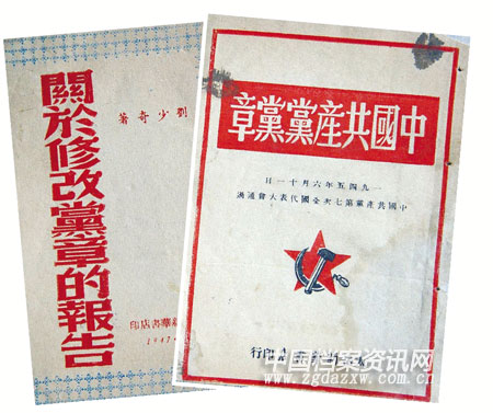 ▲劉少奇所作《關(guān)于修改黨章的報告》