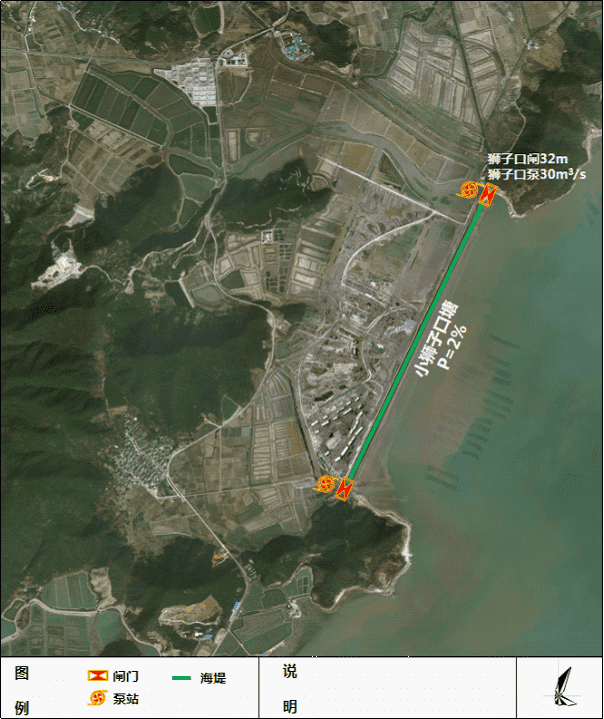 松岙鎮(zhèn)小獅子口區(qū)塊位于松岙鎮(zhèn)最東端,坐北朝南面海依山。本次小獅子口海塘安瀾工程主要包括拆除老閘新建獅子閘站和1.893公里海塘提標加固工程。其中,閘站工程包括泵站設(shè)計流量為30m3/s,水閘規(guī)模為6孔×5.5m,凈寬33m;海塘工程包括小獅子口塘提標加固至50年一遇標準。