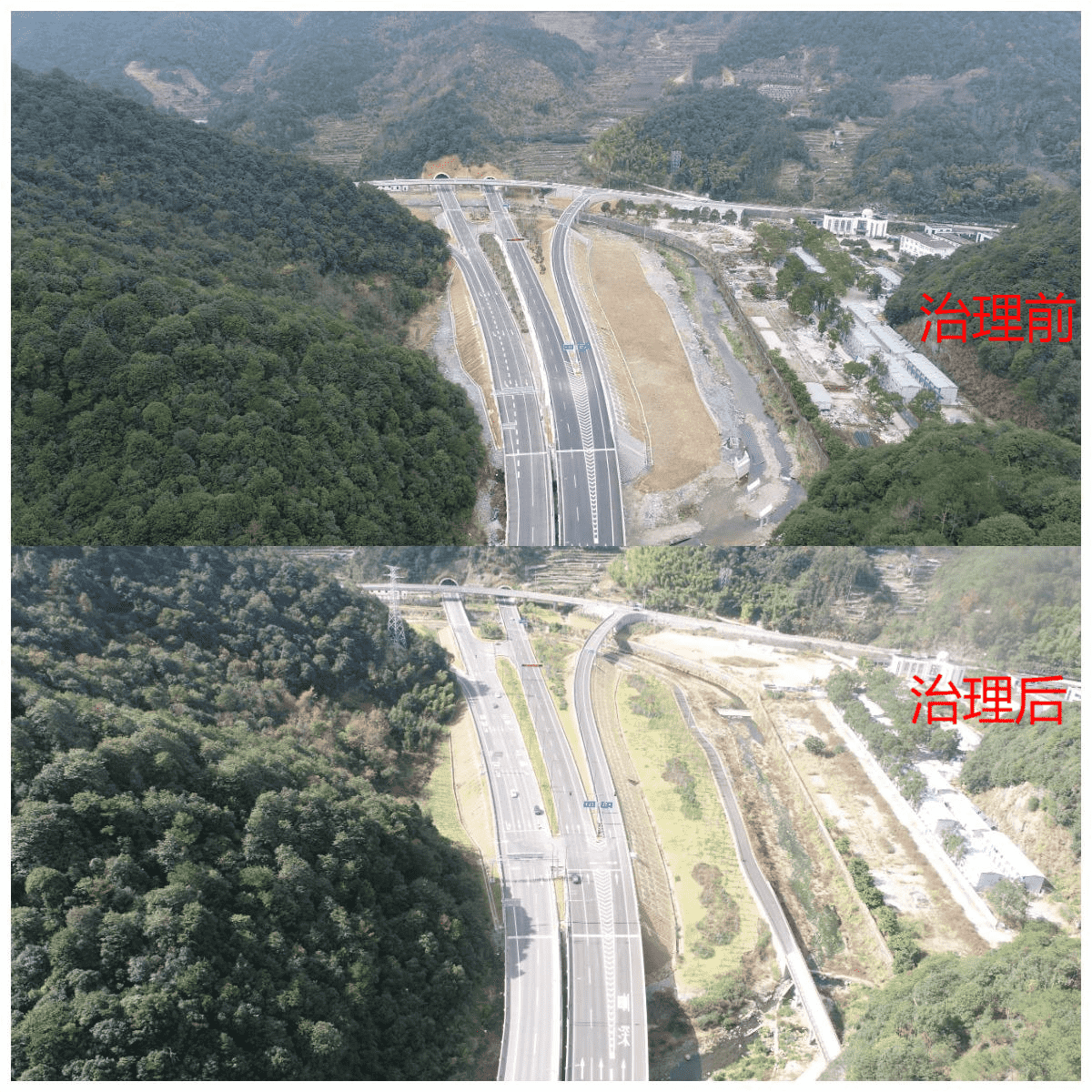 寧波市寧海縣38省道寧海橋頭胡至深甽段改建工程線路路線全長22.161km,共有大橋2316.36m/9座,中小橋463.64m/16座,涵洞113道,連拱隧道735m/2座;分離式隧道2480m/2座,平面交叉21處,分離式立交2處,互通式立交5處;交通安全、服務(wù)、管理設(shè)施22.161km。工程跨越地形條件復(fù)雜,包含多處橋涵工程、隧道工程和改河工程等。2012年,我單位受寧海縣交通運(yùn)輸局委托開展該工程水土保持工作。為減少生產(chǎn)建設(shè)過程中產(chǎn)生水土流失,我院通過實(shí)地勘探掌握項(xiàng)目沿線自然條件,并結(jié)合主體設(shè)計(jì)資料,編制水土保持方案,為生產(chǎn)建設(shè)單位提供水土保持依據(jù)。且在建設(shè)過程中,我院為生產(chǎn)建設(shè)單位提供水土保持技術(shù)支撐,通過無人機(jī)、測釬等技術(shù)手段開展建設(shè)過程水土保持監(jiān)測,避免建設(shè)過程中出現(xiàn)水土流失隱患和問題。該項(xiàng)目已于2021年完成水土保持設(shè)施驗(yàn)收工作。