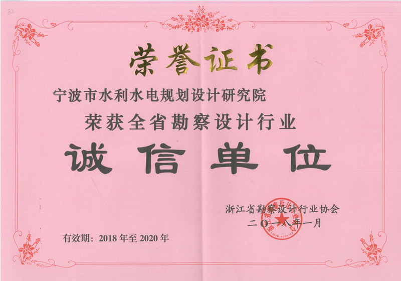 2018年度寧波市勘察市級(jí)行業(yè)優(yōu)秀誠信單位
