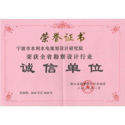 2018浙江省勘察設(shè)計(jì)行業(yè)誠信單位證書