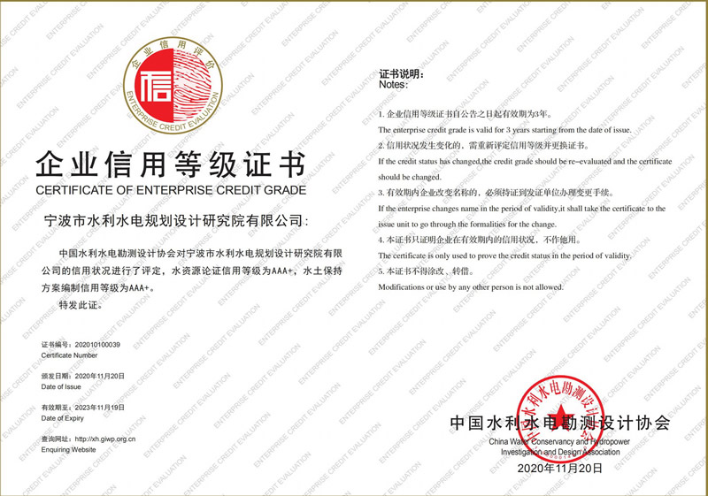 水利水電咨詢AAA級(jí)信用企業(yè)