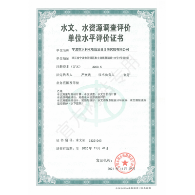 寧波院具有水利水電工程設(shè)計(jì)、工程勘察、工程咨詢、水土保持、水資源論證等多項(xiàng)資質(zhì)。承擔(dān)中小河流域規(guī)劃、水庫(kù)、河道整治、灘涂圍墾等工程的勘察、設(shè)計(jì)、咨詢、總承包業(yè)務(wù),以及各領(lǐng)域建設(shè)項(xiàng)目的防洪評(píng)價(jià)、水資源論證、水土保持方案編制、水土保持監(jiān)測(cè)、計(jì)算機(jī)行業(yè)CMMI 3級(jí)認(rèn)證、知識(shí)產(chǎn)權(quán)管理體系認(rèn)證等。
