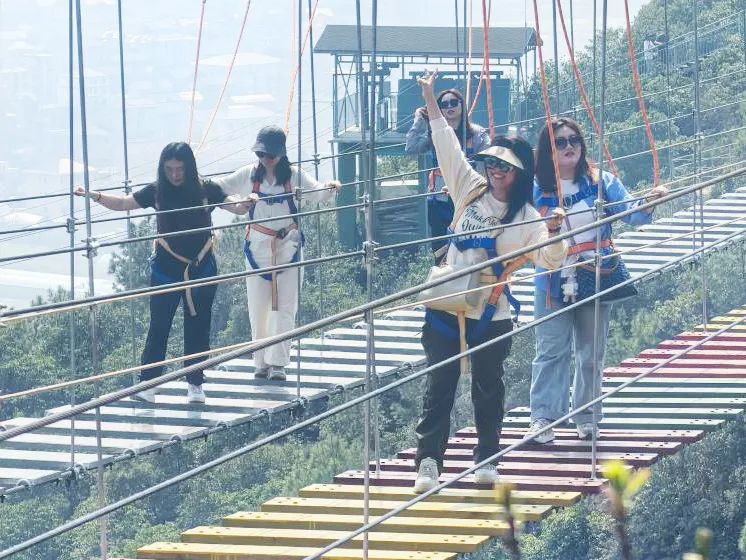 韶光爛漫,漫步尋春。午后,大家轉(zhuǎn)戰(zhàn)靈巖火山峰景區(qū),沿登山步道結(jié)伴而行,鍛煉身體之余,俯瞰浙東沿海罕見的火山口地貌遺跡。人花相映,山海相逢,既有虛空行走、高空滑翔的“挑戰(zhàn)派”,也有慢行賞景的“休閑黨”,共同享受山海交織的壯闊畫卷。