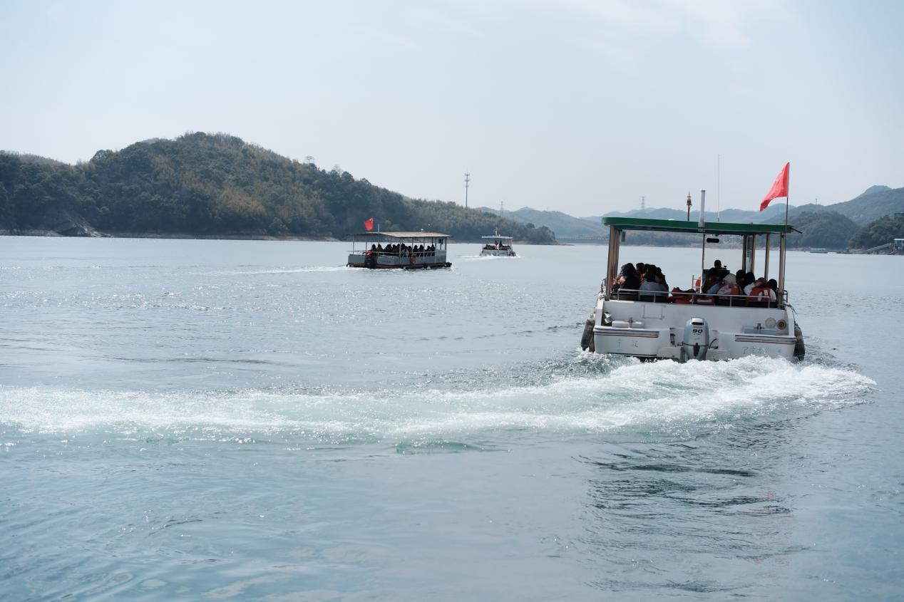 第一站,隊(duì)伍分批乘船登上湖心島——猴島,近距離觀賞野生獼猴群的靈動(dòng)可愛(ài)。島上不僅有“龍女獻(xiàn)珠”“九龍神龜”等人文景觀,更有獼猴嬉戲,引得大家紛紛拿出手機(jī)拍照留念。漫步環(huán)島小道,湖光山色盡收眼底,微風(fēng)拂面,令人心曠神怡。