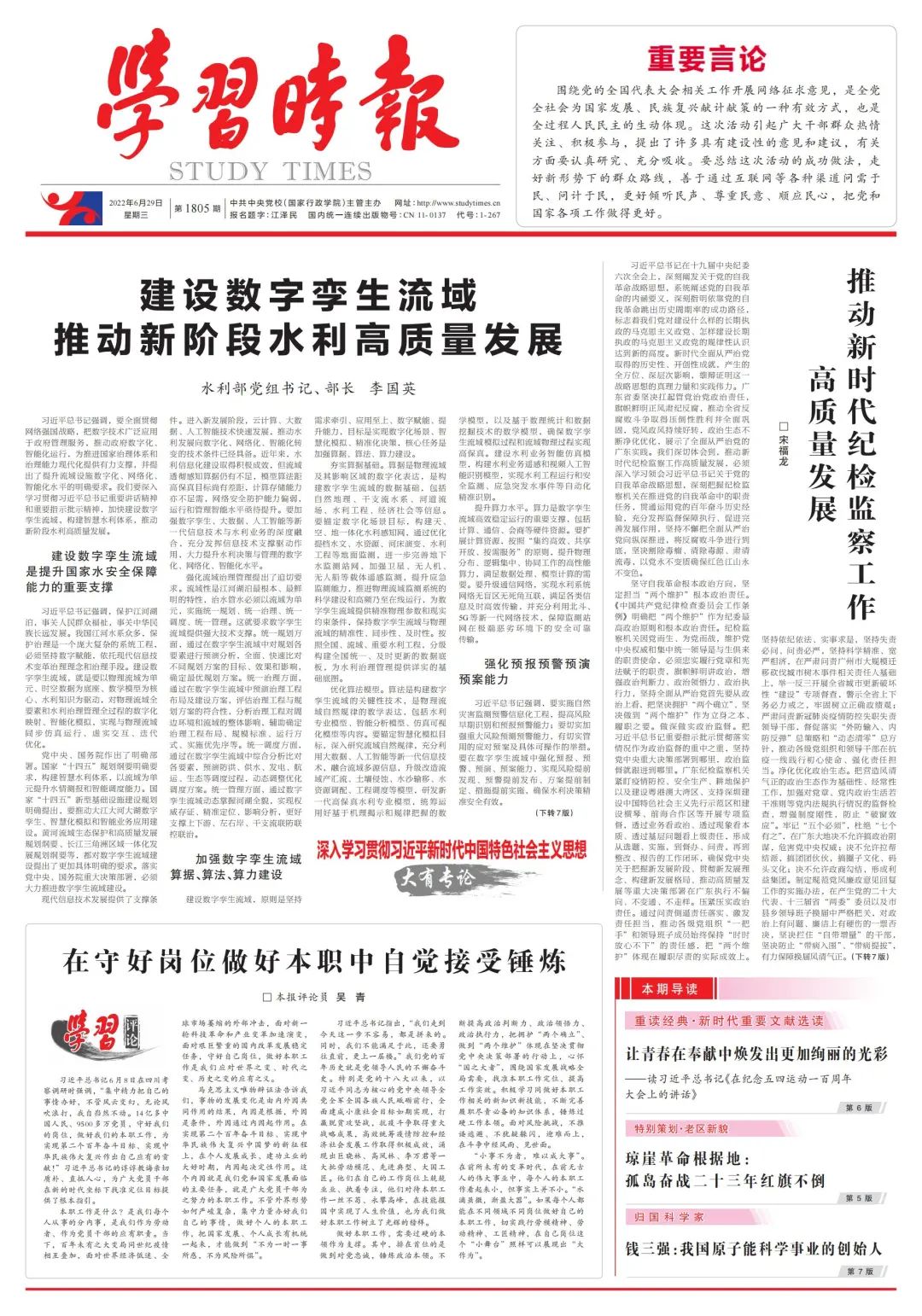 水利部黨組書記、部長李國英:建設(shè)數(shù)字孿生流域 推動(dòng)新階段水利高質(zhì)量發(fā)展