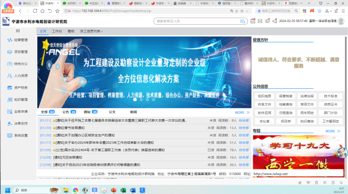 從2002年探索建設流域數(shù)字化至今,寧波院業(yè)務的數(shù)字化已走過了20多年,2023年,以事業(yè)部制轉型為契機,提出建設以OA辦公系統(tǒng)、業(yè)財一體化系統(tǒng)、知識庫系統(tǒng)為代表的管理工具,在業(yè)務數(shù)字化的基礎上,推動企業(yè)管理的數(shù)字化轉型。