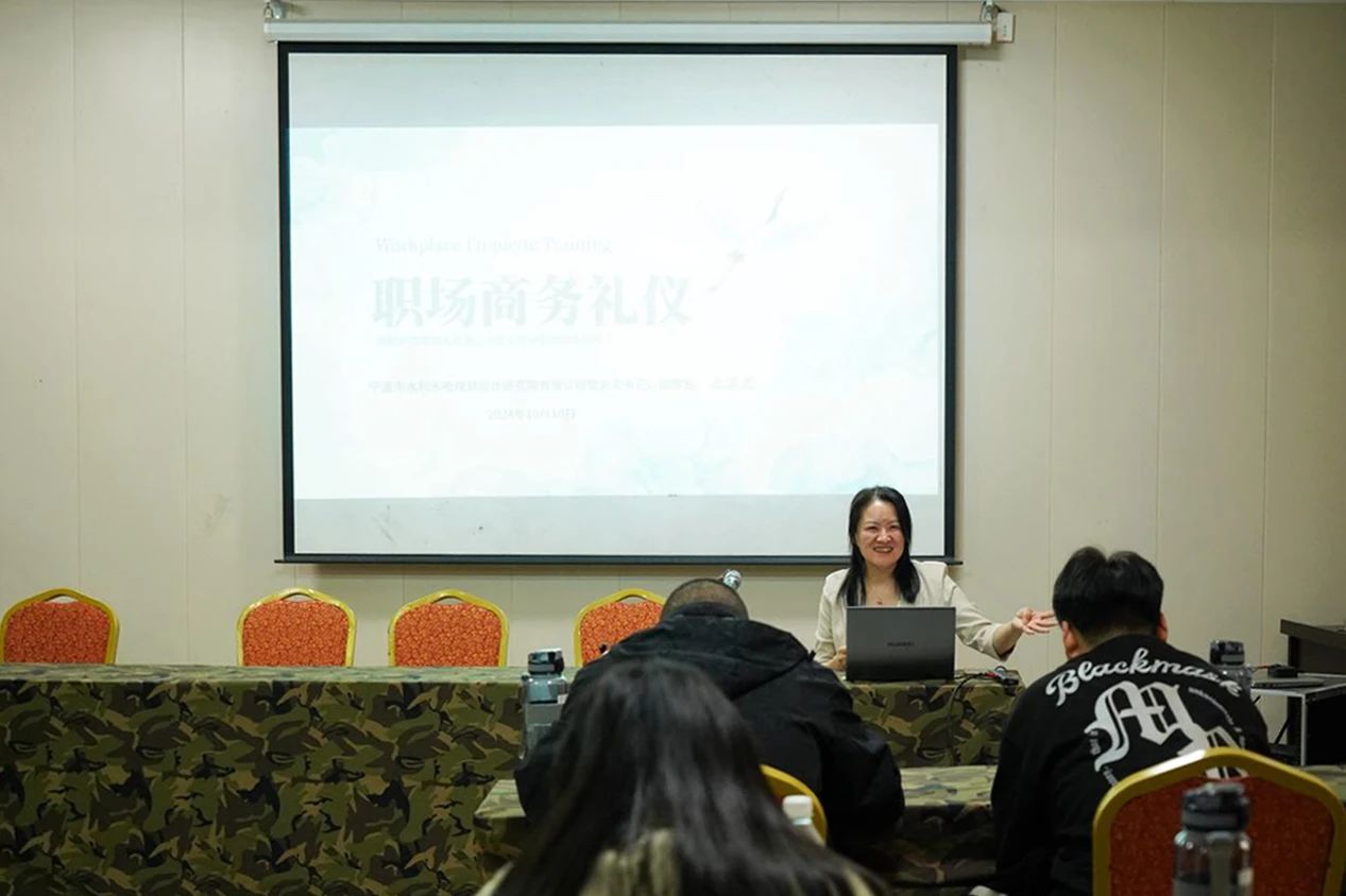 業(yè)務(wù)培訓(xùn)設(shè)有多個(gè)專題講座,分別由副院長(zhǎng)王洪霞及各部門分院負(fù)責(zé)人主講。內(nèi)容涵蓋職場(chǎng)商務(wù)禮儀、行政辦公知識(shí)、規(guī)章制度宣貫、保密專題培訓(xùn)及規(guī)劃咨詢、工程設(shè)計(jì)、勘察檢測(cè)、建設(shè)管理、智慧水利等五大業(yè)務(wù)內(nèi)容。講師們聚焦重點(diǎn),講解難點(diǎn),分享經(jīng)驗(yàn),幫助新員工盡快完成從校園到職場(chǎng)的銜接,了解崗位需求、獲取職場(chǎng)知識(shí)、積極適應(yīng)新環(huán)境。新員工認(rèn)真聽講,積極提問,收獲良多。