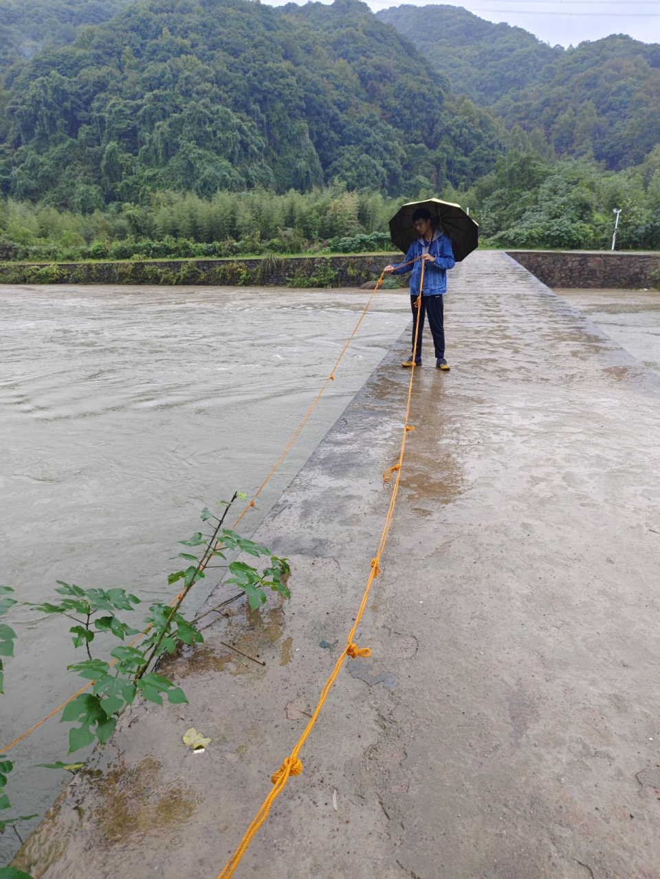 在鐘家潭進(jìn)行水文勘察與測流率定工作