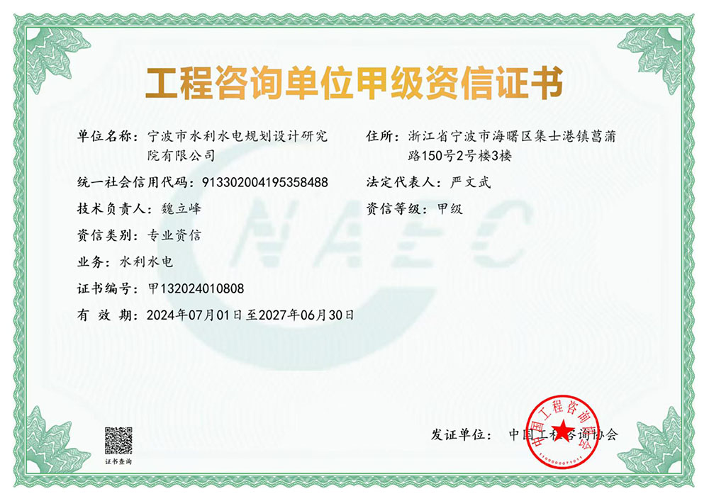 寧波院具有水利水電工程設(shè)計(jì)、工程勘察、工程咨詢、水土保持、水資源論證等多項(xiàng)資質(zhì)。承擔(dān)中小河流域規(guī)劃、水庫(kù)、河道整治、灘涂圍墾等工程的勘察、設(shè)計(jì)、咨詢、總承包業(yè)務(wù),以及各領(lǐng)域建設(shè)項(xiàng)目的防洪評(píng)價(jià)、水資源論證、水土保持方案編制、水土保持監(jiān)測(cè)、計(jì)算機(jī)行業(yè)CMMI 3級(jí)認(rèn)證、知識(shí)產(chǎn)權(quán)管理體系認(rèn)證等。